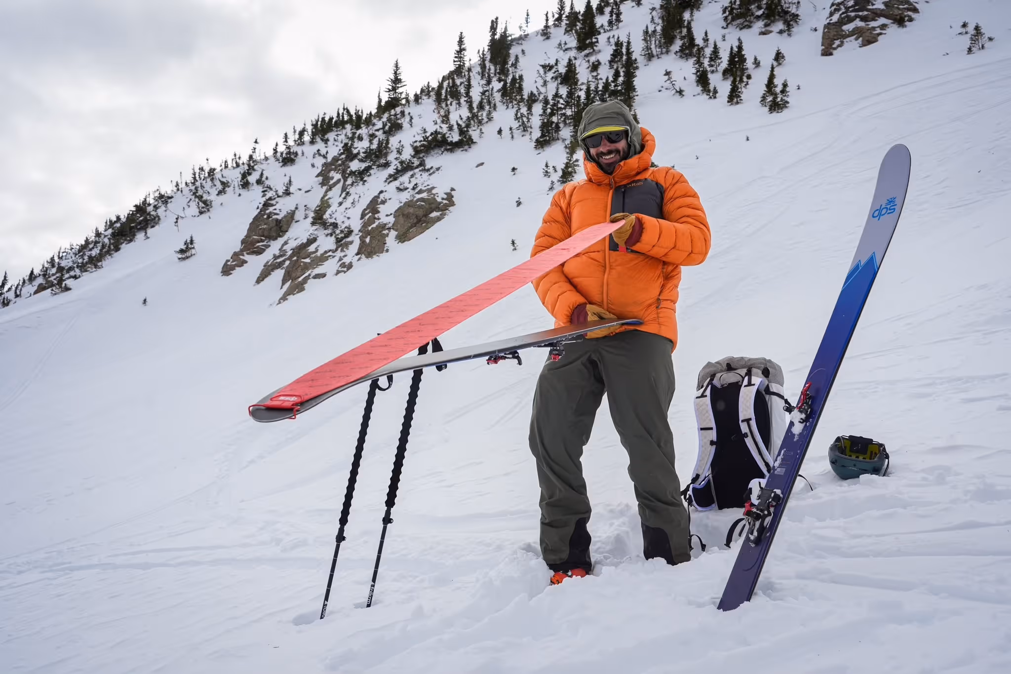 While you don't need to own all your backcountry gear yet, we'll provide a detailed list to ensure you're properly equipped. This includes backcountry skis (lighter and sized for uphill travel), climbing skins for grip while ascending, and backcountry boots that offer both walking and skiing modes. Avalanche safety gear is mandatory and includes a beacon for locating buried victims, a shovel for digging them out, and a probe for pinpointing their exact location. We have avalanche safety equipment available for use in this course. A backpack designed for backcountry skiing will comfortably carry all your essentials, including water, food, extra clothes, and emergency supplies. As always if you have any further questions about equipment please let us know.