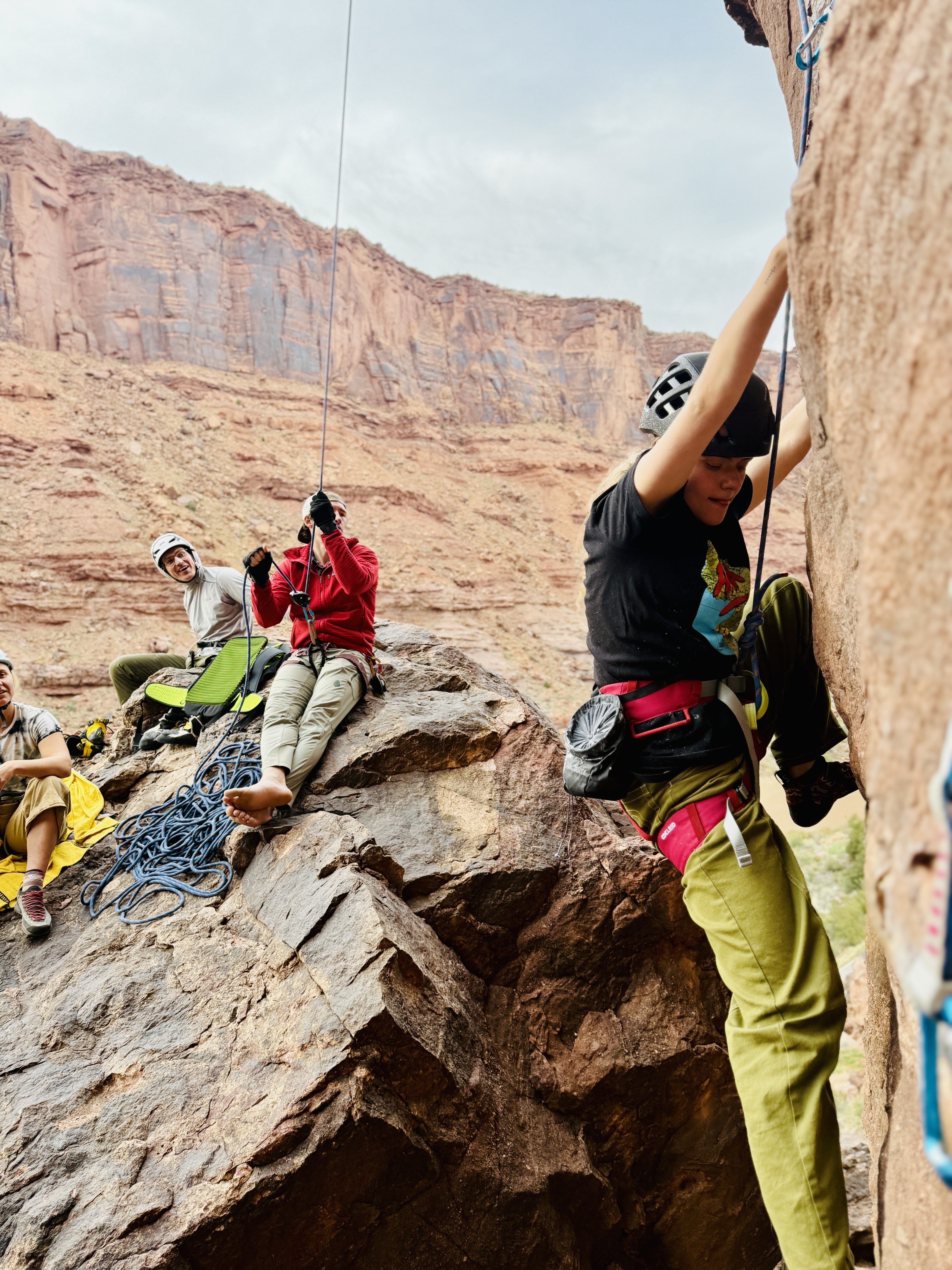The curriculum of our outings is highly adaptable, catering to everyone from first-time climbers to seasoned veterans looking to transition into traditional lead climbing. For those new to the area, we often begin at accessible crags such as Wall Street or the Ice Cream Parlor, where the concentration of routes allows for high-volume practice in crack climbing techniques like hand jams, finger locks, and stems. As you gain confidence, the instruction shifts toward the complexities of the desert environment, including gear placement in parallel fissures, the construction of multi-directional anchors, and the specific considerations of climbing on Wingate and Navajo sandstone. We aim to deconstruct the intimidation factor of the desert, turning daunting vertical faces into a manageable and rewarding classroom.
